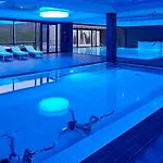 El Hotel&Thalasso Villa Antilla - Habitaciones con Terraza - Thalasso incluida dispone de una piscina, además de baño de vapor turco, un jacuzzi y baños públicos calientes. Los huéspedes también pueden mantenerse activos con instrucciones de yoga y bicicletas que ofrecen el gimnasio del hotel.